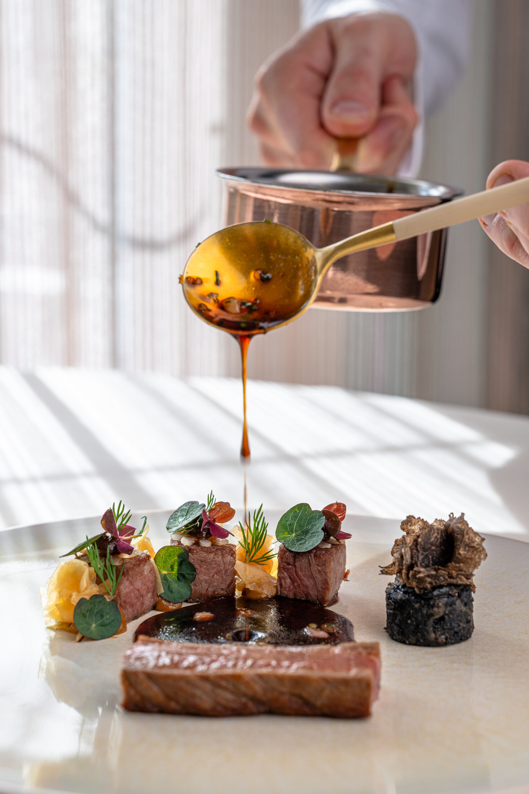 Our Michelin Dining Break centres on an evening in The Dining Room — where Ricki Weston’s one Michelin-starred menu is served with quiet precision and a sense of occasion. From your first glass to the final course, this is dining designed to be lingered over.