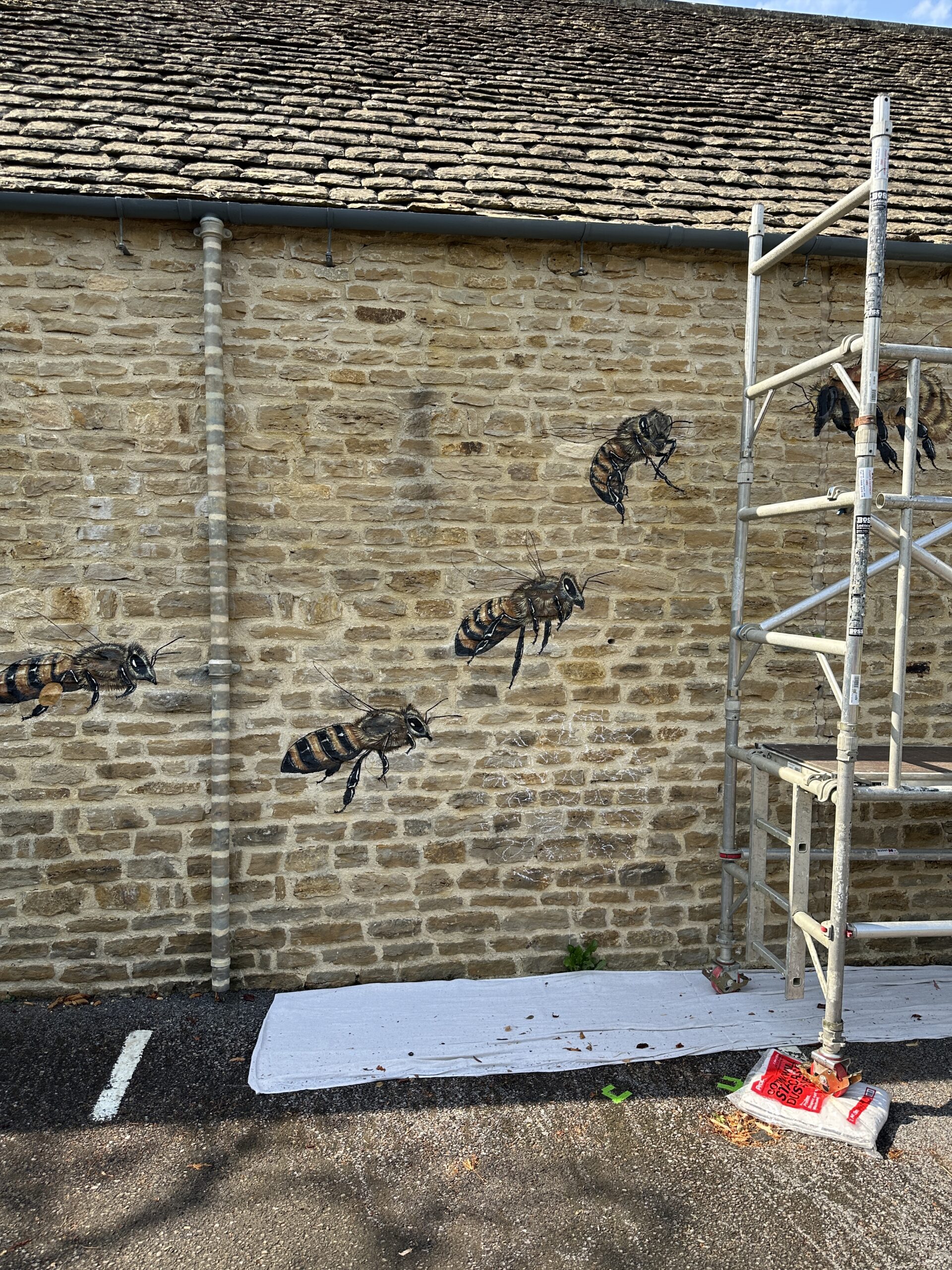 During his time at Whatley, Matt engaged deeply with the local community. On August 15th, children from Malmesbury Primary School visited and participated in the mural’s creation, meeting the artist and learning about the importance of bees and nature. The Malmesbury Guides group also contributed by painting flowers on the mural, making it a true community effort.